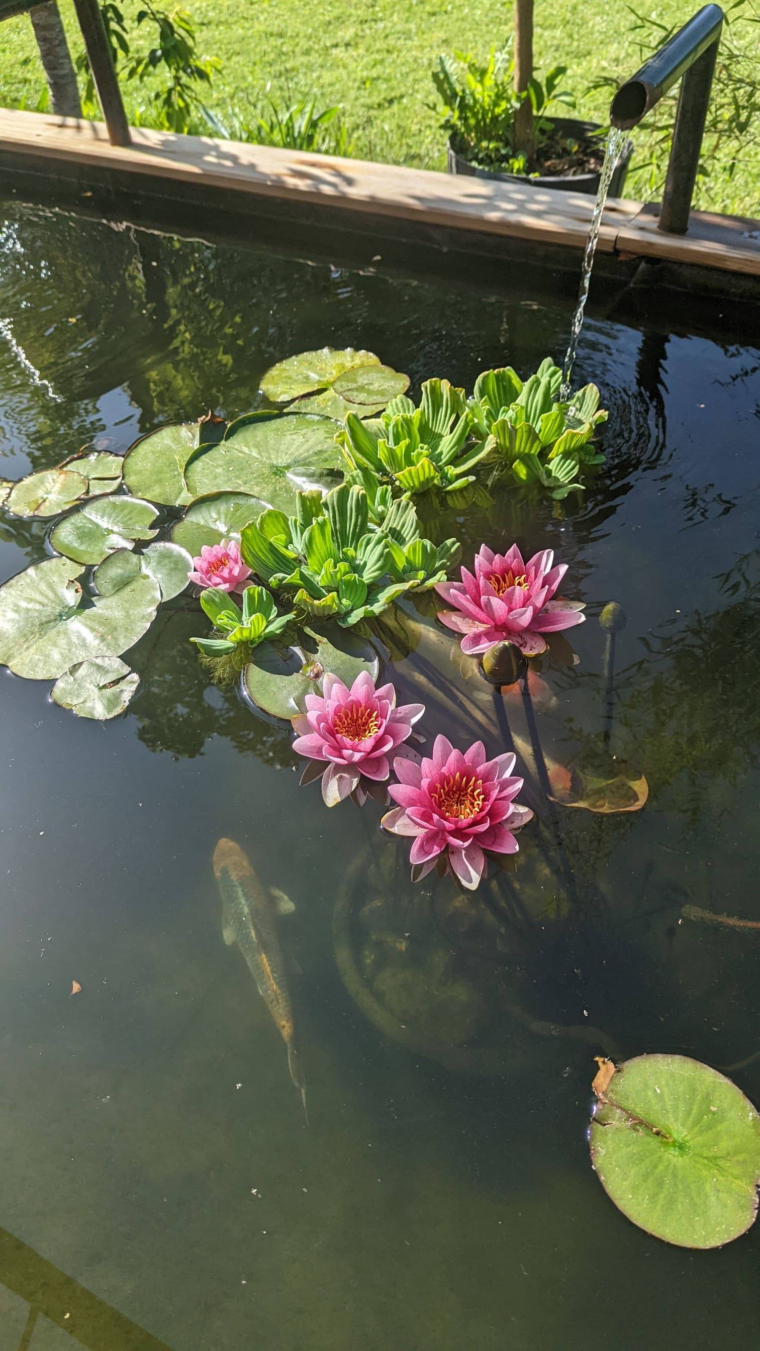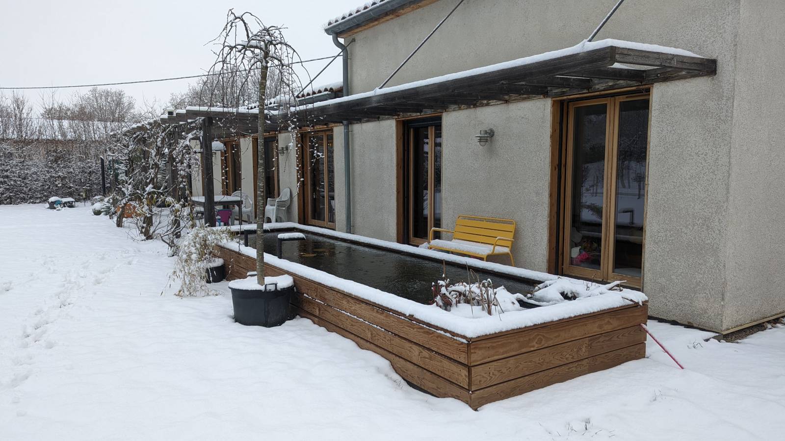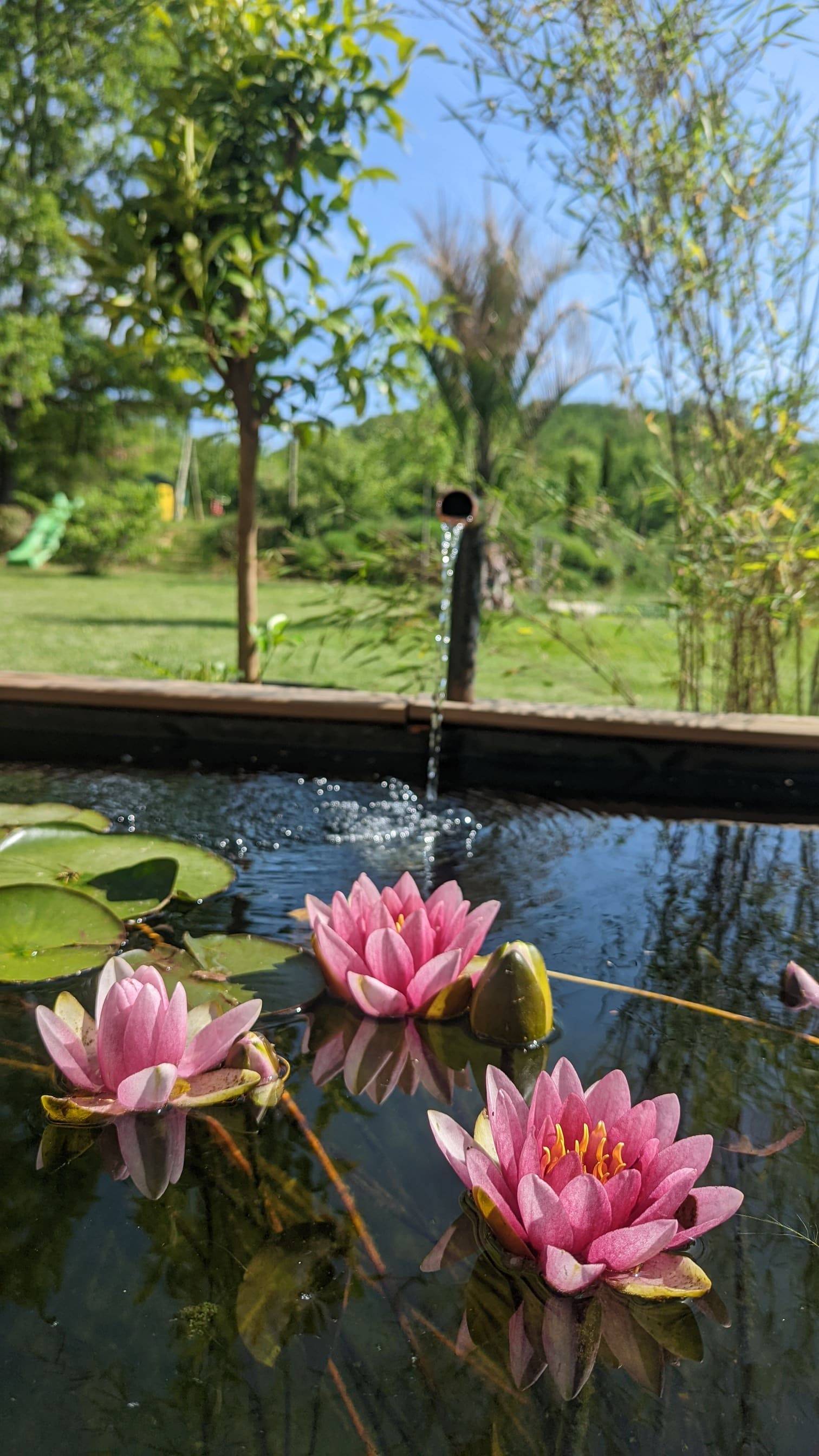 Nous pouvons nous projeter à deux saisons différentes, en hiver le bassin est recouvert de gèle et de neige, puis pour laisser place au printemps et laisser éclore les Nénuphars qui viennent décorer le bassin de leur belle couleur rosé.