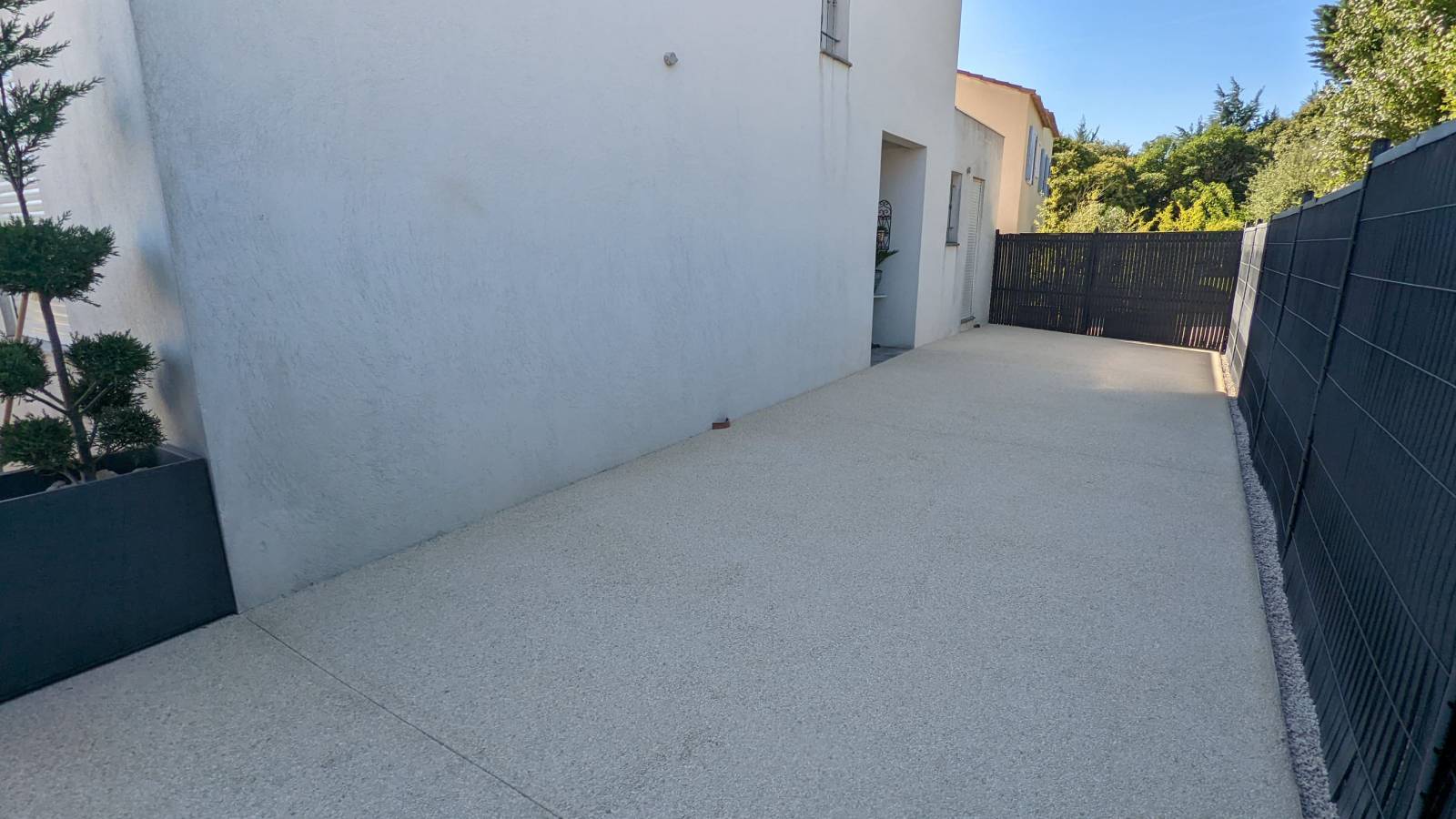 Le sol anciennement gravillonné a été remplacé par un béton désactivé.
