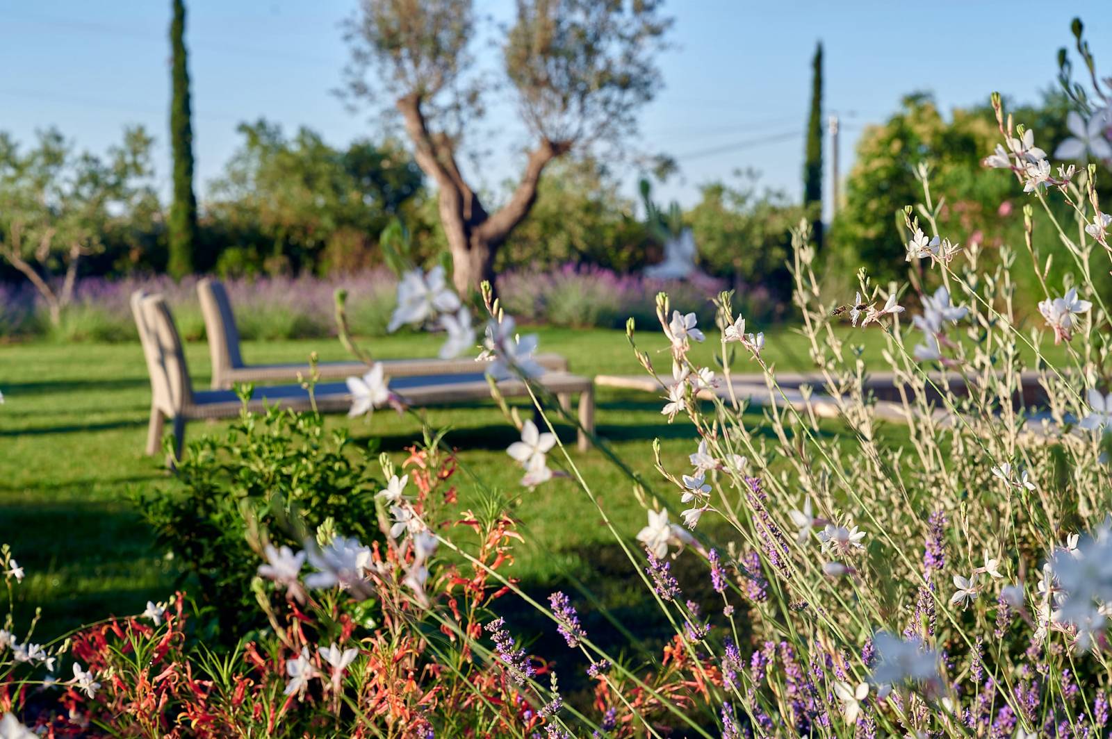 massifs fleuris ondulent autour des pelouses et apportent couleurs et diversités de feuillages au fil des saisons.