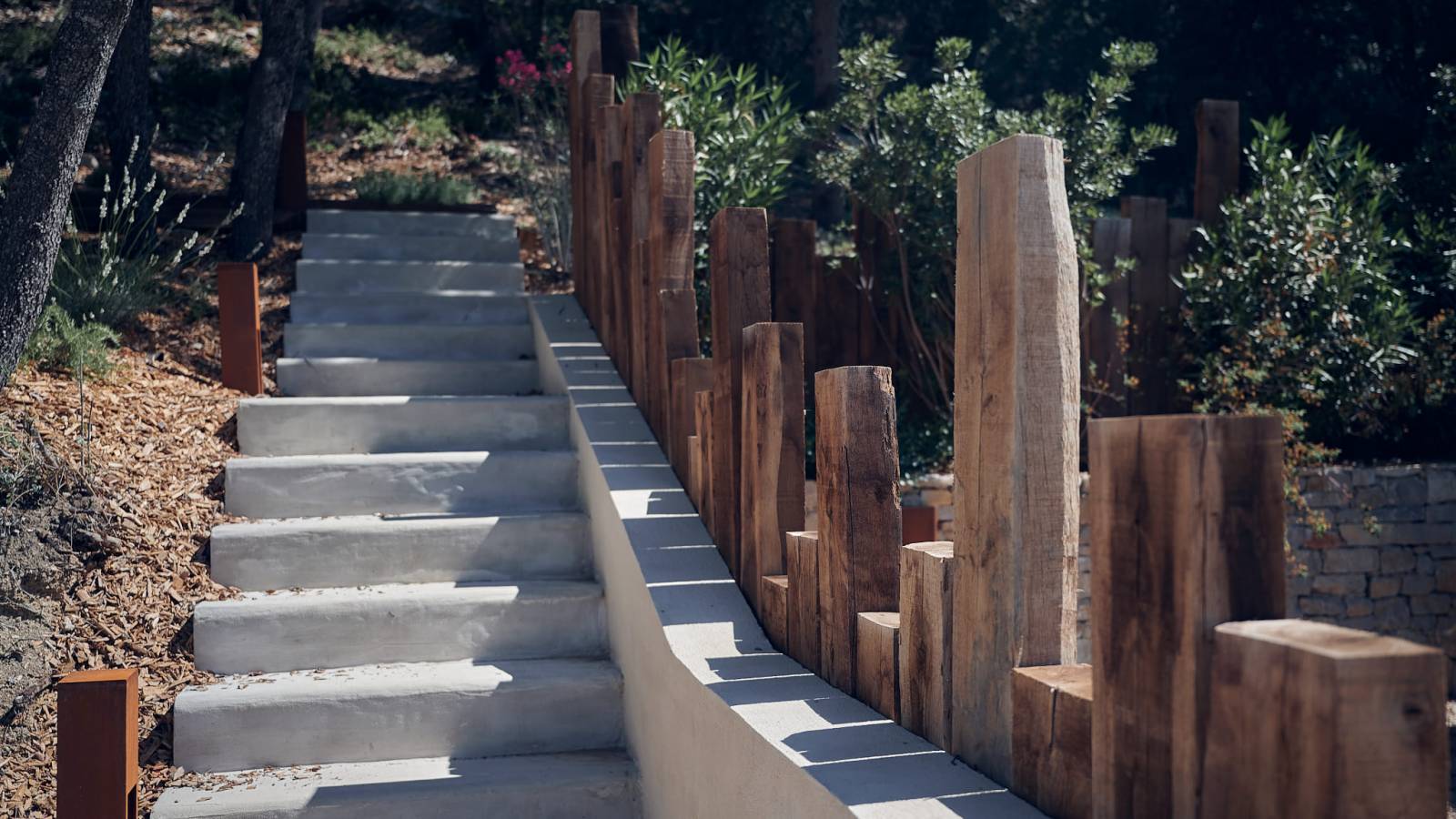 jeux de traverses permettent de régler les problèmes de hauteurs et jouent sur les différents matériaux.