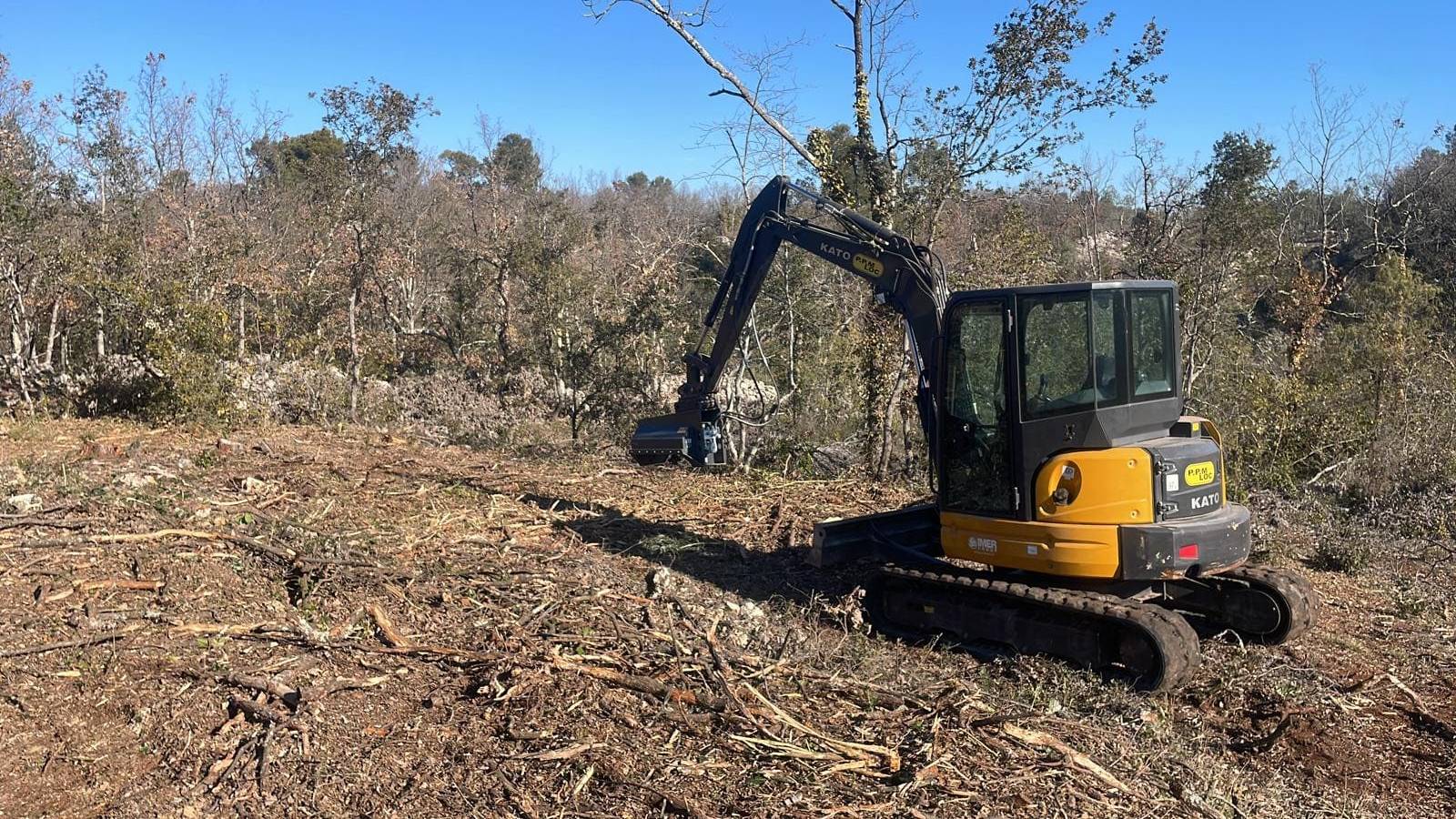 L'équipe de AD Paysage, a réalisé pour son client, un gros entretien du jardin. Un débroussaillage d'une surface de 6000m2, nous avons utilisé une mini-pelle avec un gyrobroyeur à son extrémité, qui permet de couper l'ensemble des broussailles et strate herbacée.