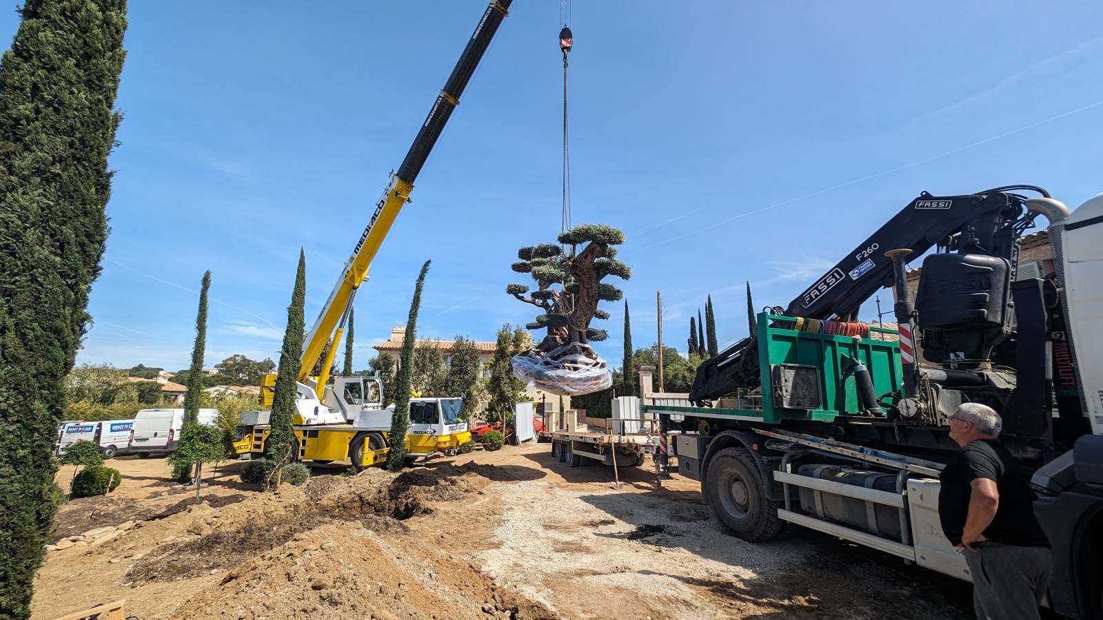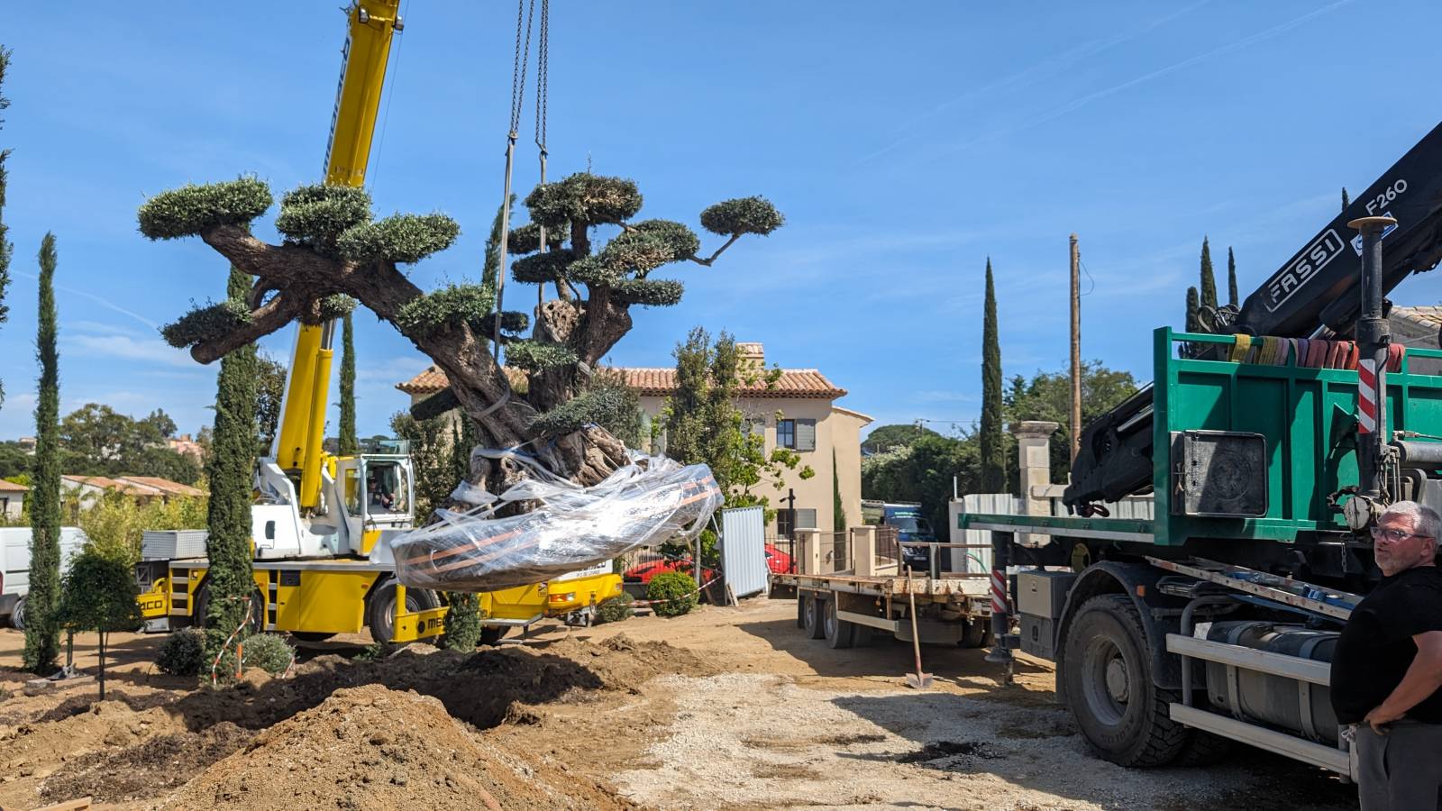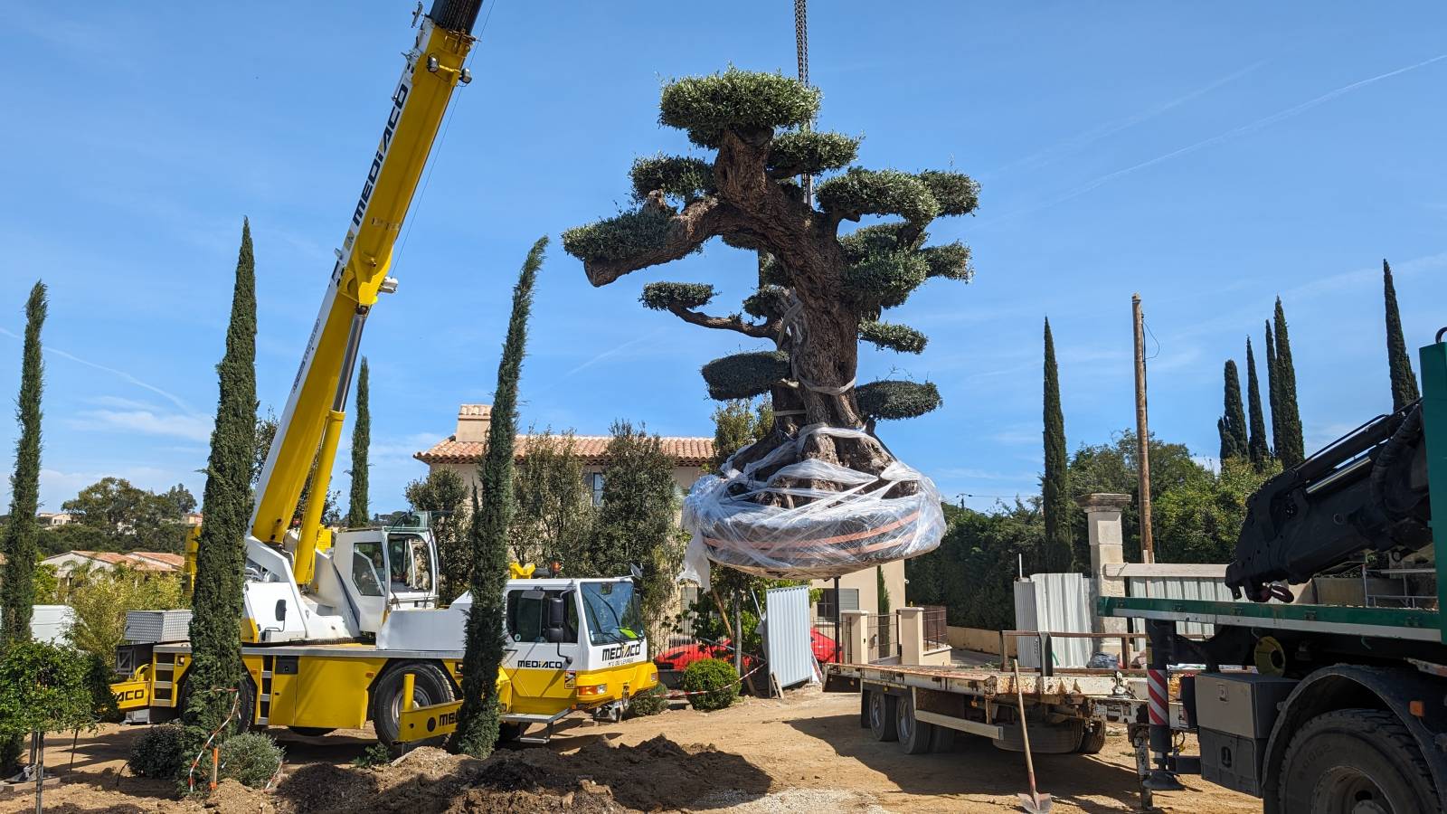 Cette semaine, nous avons créé un jardin Méditerranéen à Saint-Maximin-la-Sainte-Baume, où nous avons planté un olivier millénaire, transporté et installé à l'aide d'une grue, pesant pas moins de 5 tonnes. Le jardin Méditerranéen s'inspire des paysages typiques du sud de la France, de l'Italie ou de l'Espagne, et se caractérise par des plantes résistantes à la chaleur, à la sécheresse et au soleil intense. Ce type de jardin est conçu pour nécessiter peu d'entretien et peu d'arrosage, tout en créant un environnement agréable.
