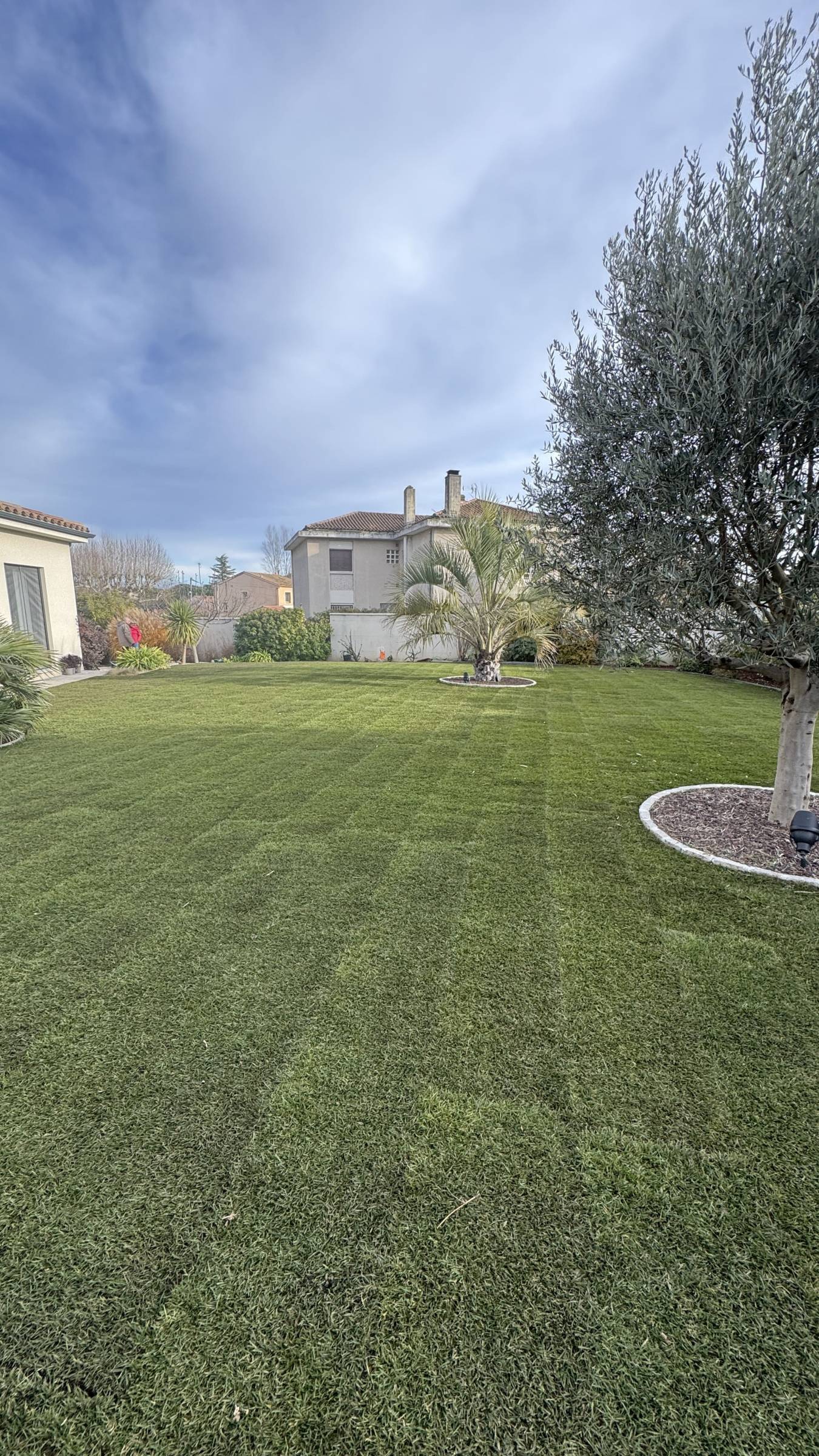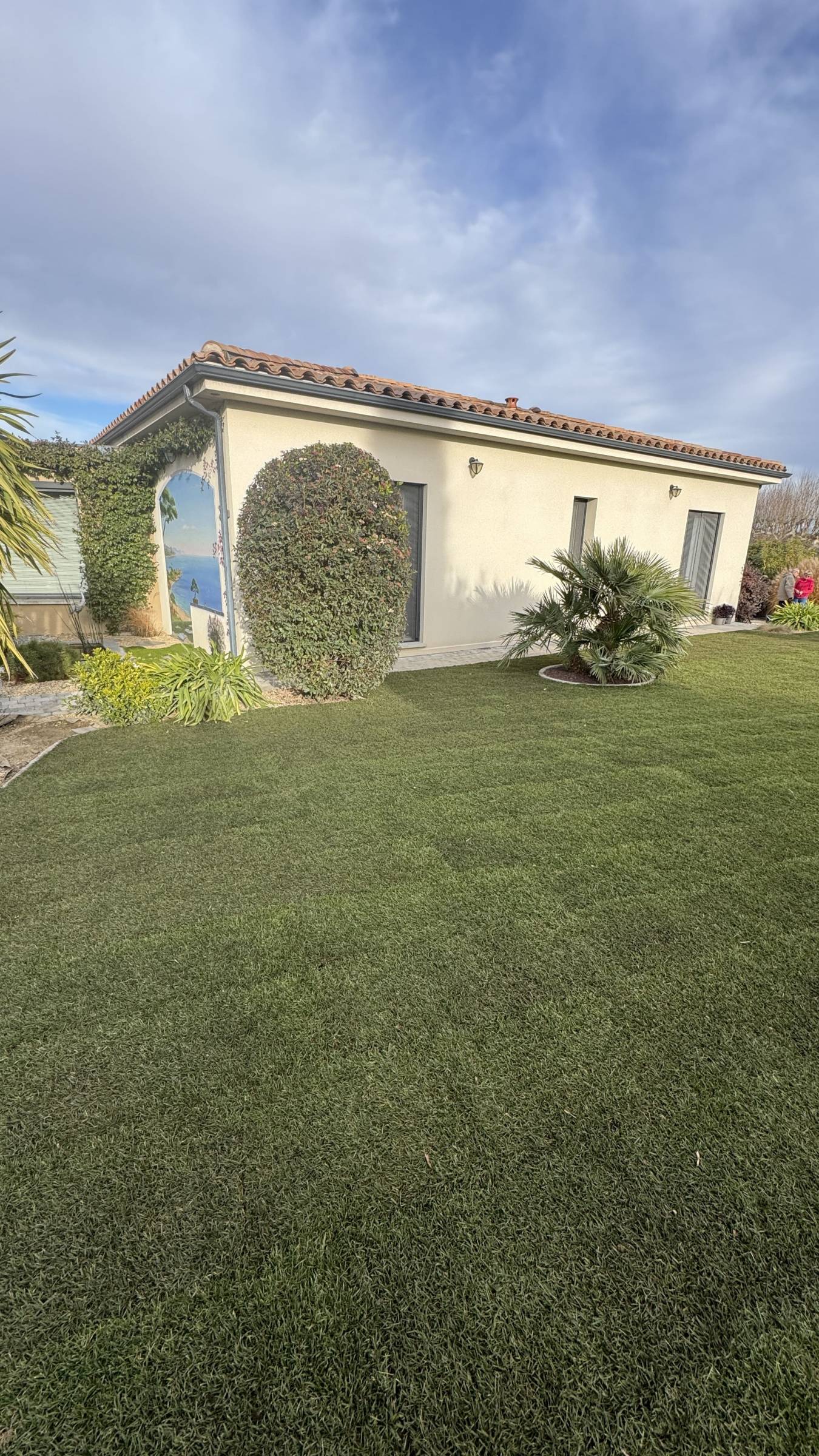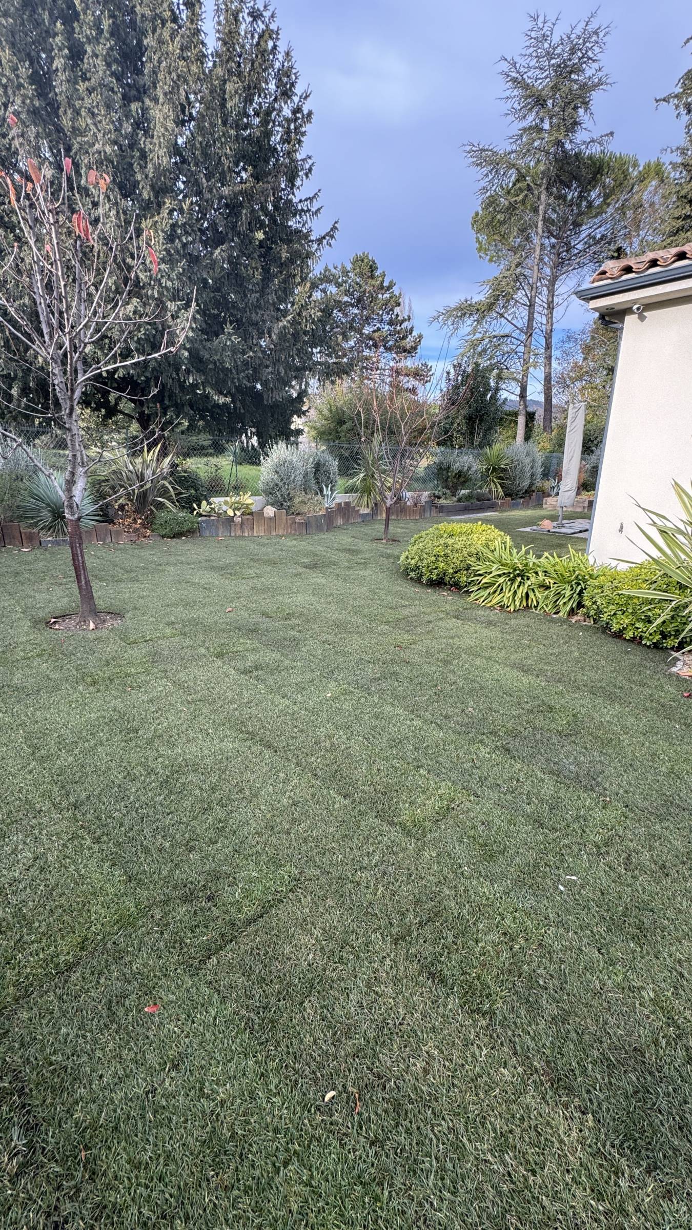 Cette semaine, nous avons posé un gazon en plaque à Saint-Maximin-la-Sainte-Baume, dans le Var. Le gazon en plaque est une solution rapide et efficace pour obtenir une pelouse uniforme et bien dense, sans avoir à semer. Ce système repose sur l'utilisation de rouleaux de gazon déjà cultivé, qu'on transporte et installe directement sur votre terr