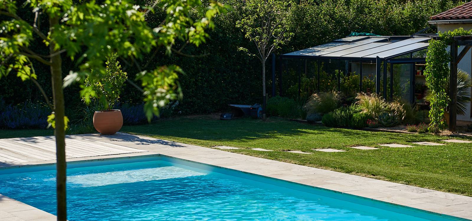 Sur ce chantier situé dans le haut-Var, à Rians, nous avons aménagé l’espace autour de la piscine. Nous avons privilégié la plantation de plantes méditerranéennes pour un jardin économe en haut, comme le Yucca Rostrata.